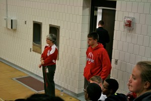 Around 6:55, Coach Kramer and the rest of the team gathered on the gym floor to honor seniors Emma Muter, Lydia Thompson, Edith Kamau, and Chelsi Her by presenting them with handmade blankets made by the rest of the team, as well as sharing kind words about each departing senior. It was a great way to send them off and to celebrate their hard work and accomplishments as members of the team.