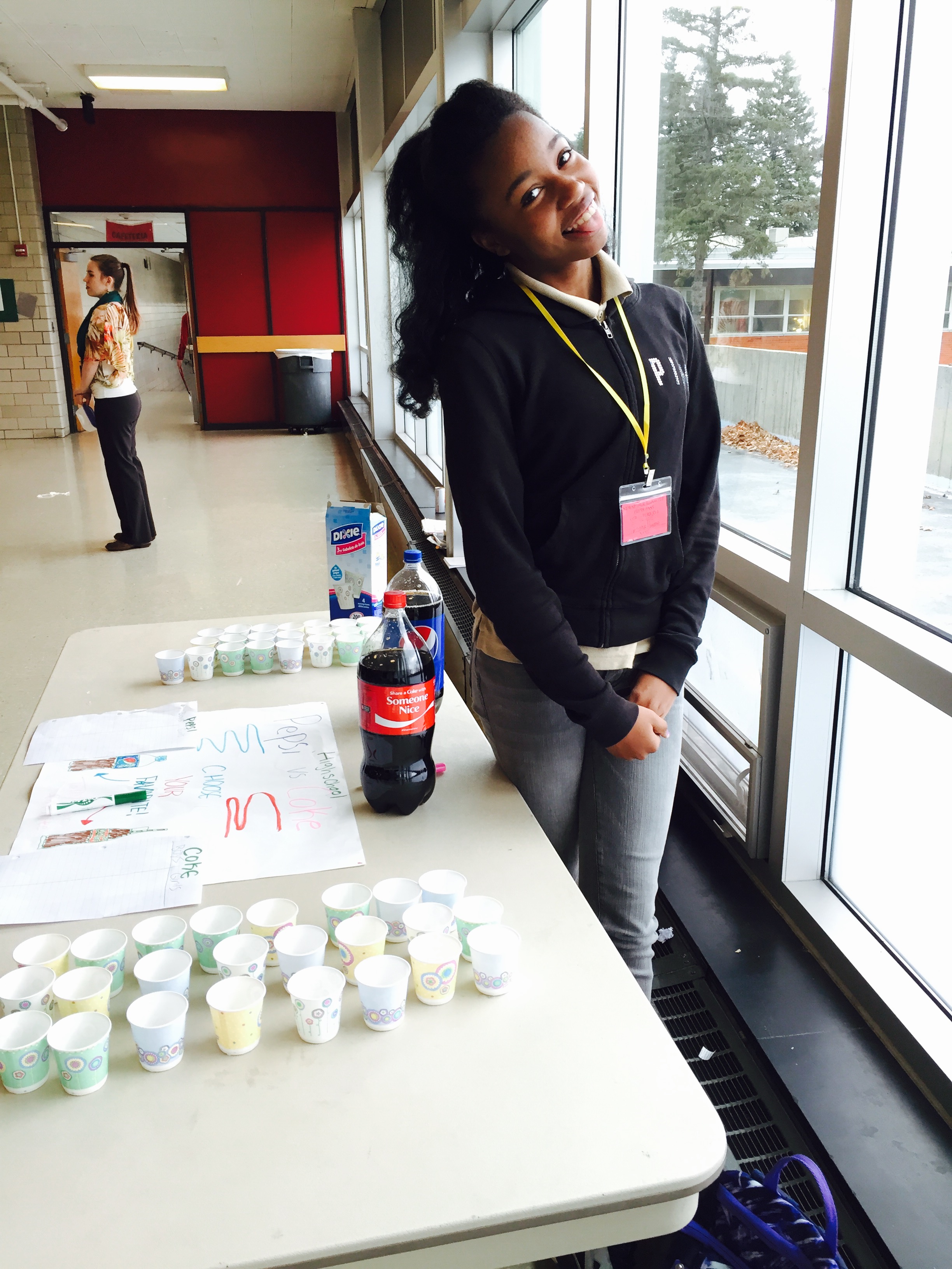 Once the HPHS students entered lunch, we had them come over and try both drinks and after they tasted it, they tallied which drink they liked best. The amount of soda we gave the students to taste was about a Dixie cup worth.