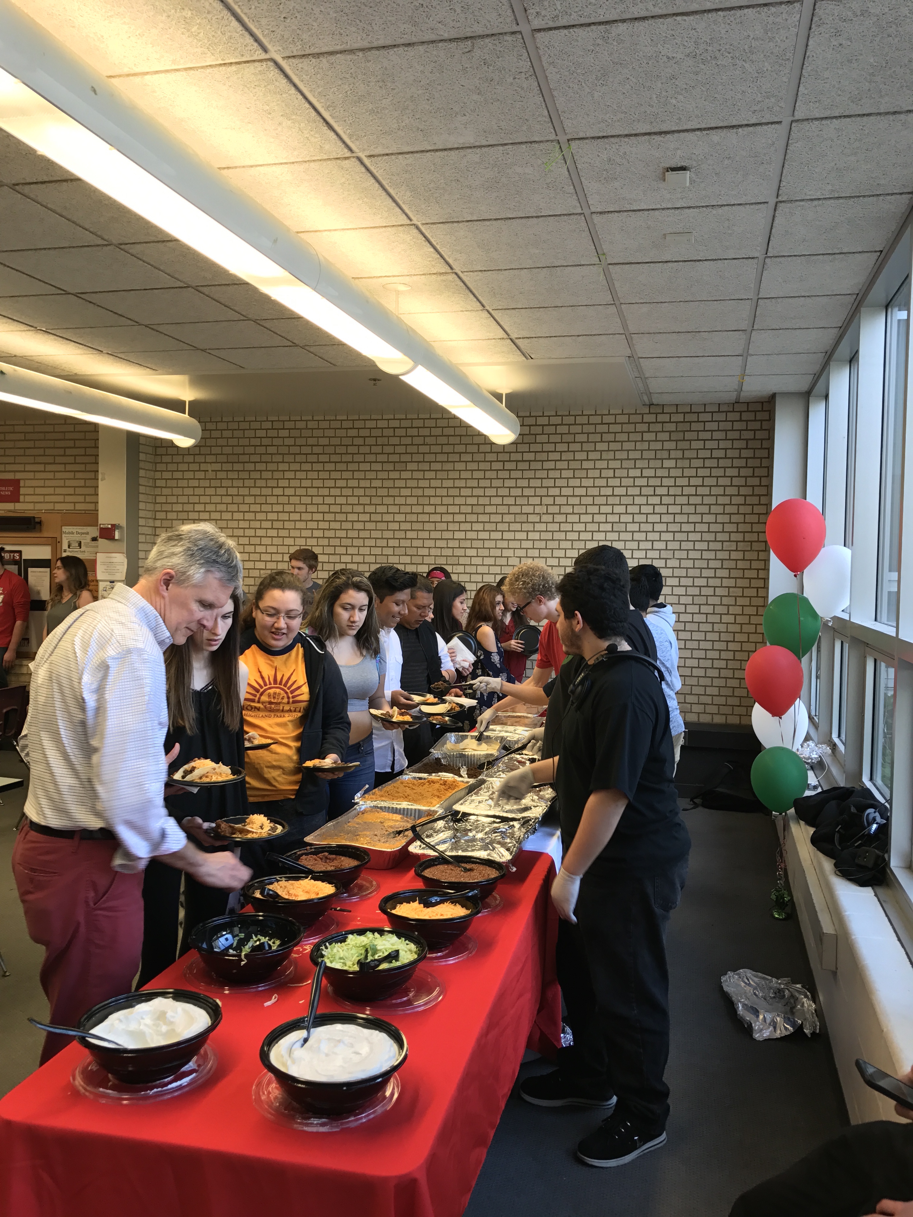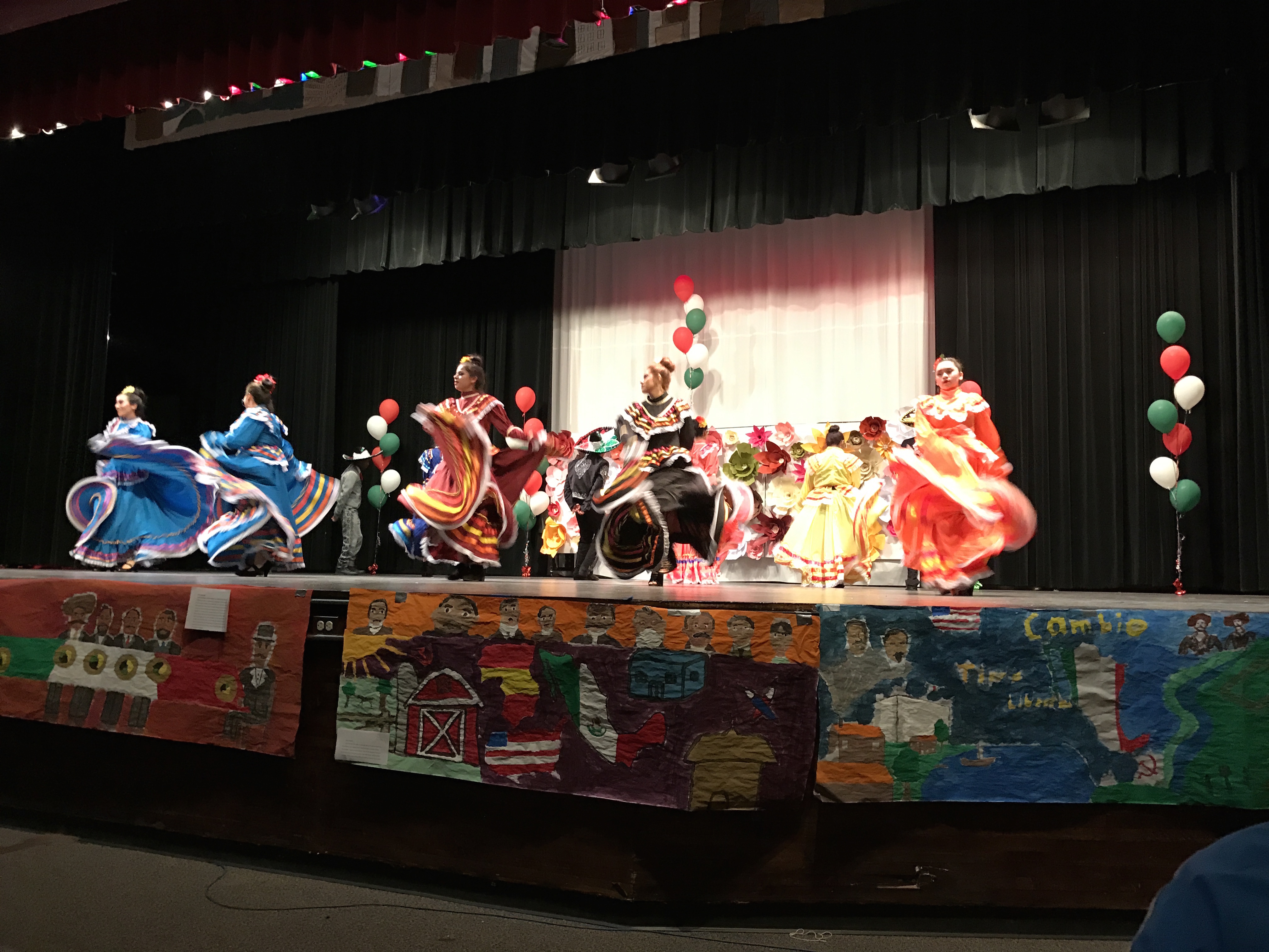 This year was a little different than last year. This year’s dances included Bachata, Traditional Aztec dancing and El Baile de Los Viejitos. There was also a special performances by Sra. Nelsons first and fifth hour Spanish Immersion classes. Her first hour danced Cumbia and her fifth hour danced Merengue. The Folklorico dancers had the Mariachi play live during their performance and it was a surprise to everyone.