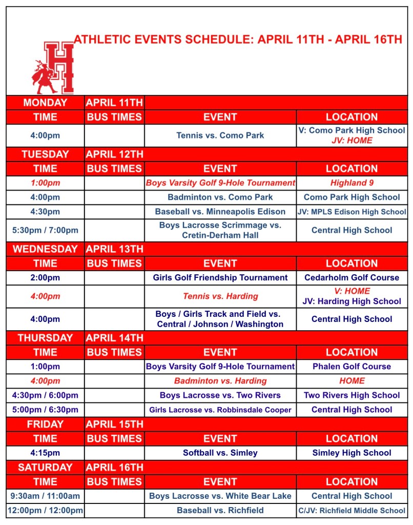 Badminton, Baseball, Golf, Lacrosse, Scoreboard/Schedule, Softball, Sports, Track & Field Sports Schedule for: April 4/11 – April 4/16 Image April 12, 2022 graceblumerlamotte Leave a comment Share this: Click to share on X (Opens in new window) X Click to share on Facebook (Opens in new window) Facebook Related
