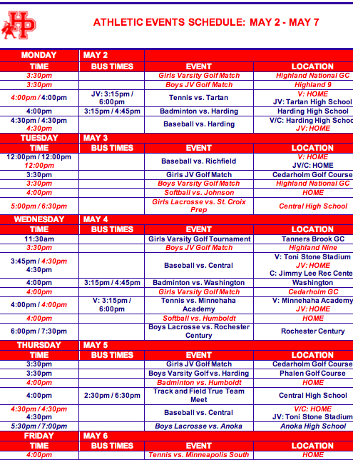 Badminton, Baseball, Golf, Lacrosse, Scoreboard/Schedule, Softball, Tennis, Track & Field Sports schedule for May 2-7 Image May 2, 2022 HPSH Plaid Line Leave a comment Share this: Click to share on X (Opens in new window) X Click to share on Facebook (Opens in new window) Facebook Related