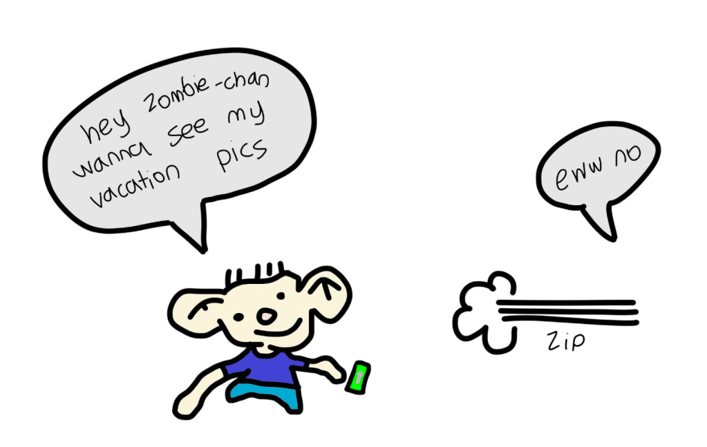 Zombies aren’t ones to generally seek a romantic relationship. If one attempts to do so, the likely outcome is of zombification or death. Thus, the following image is what one should do instead.