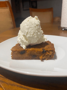 - Now that the bread is fully cooled down cut yourself a piece and grab a scoop of ice cream (if you have any) and place it on top of your slice and enjoy 🙂