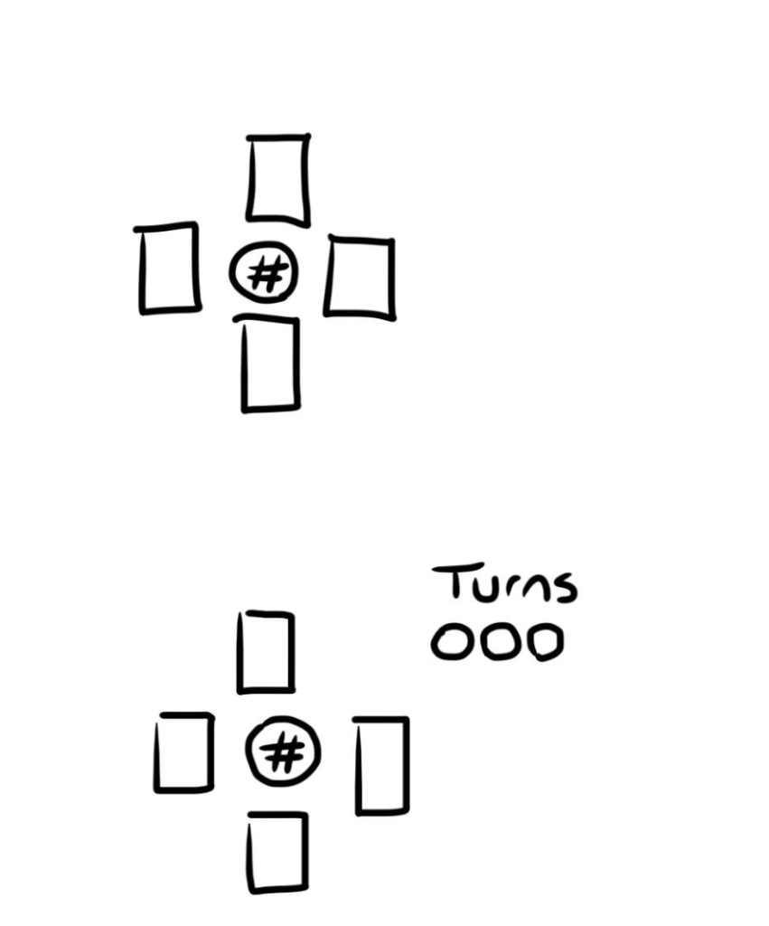 Now it’s time we talk about combat. While playing you’ll accumulate various people in the form of cards that you can add to your party, and when you enter a story battle you’ll choose 4 to use against the opponents 4. Basically, you continue your swiping pursuits as you swipe left or right on your allies to have them attack the opposing team, in which eliminating a fighter will open up a number inside the circle you and the other team each make, where you have to get that number to 0 to win. Here’s a diagram to illustrate: