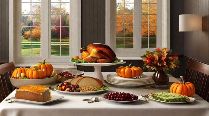 Turkey: More than 90% of Americans eat turkey on Thanksgiving. many people put stuffing in it while they cook it. You can also cut it up and put it in rolls to make sandwiches. We don’t know what type of bird was eaten on the first Thanksgiving, but most people chose turkey now because it is bigger than a chicken so it can feed more people. Turkeys are also super common all around the states, so if you hunt you can always catch your own turkey for dinner.