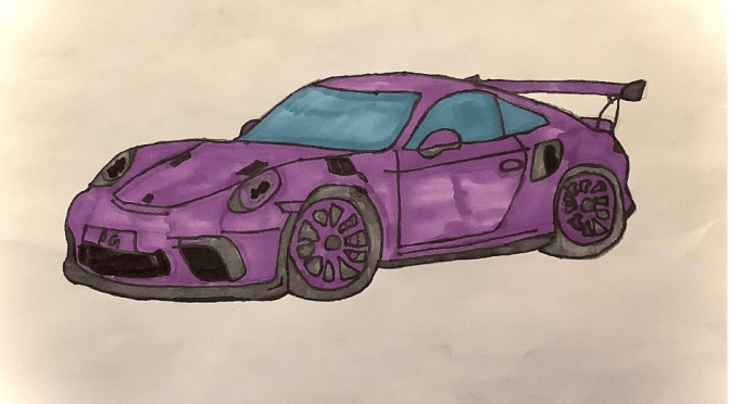This drawing is of a Porsche 911. I drew this Porsche 911 because I let my friend pick a car, and he picked it, so I drew it.