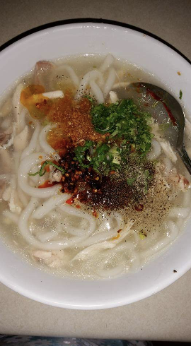 Qhaub Piaj (thick chicken noodle soup):