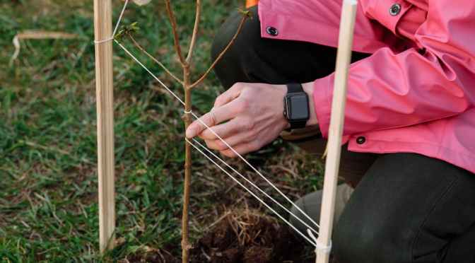 They shared a step-by-step process of how to plant them and how each step will help the trees grow. We covered the trees in a biodegradable plastic to protect them from animals who will eat the growing trees. On top of the plastic we would put mesh so that way birds wouldn’t land on the plastic and fall inside and get stuck.