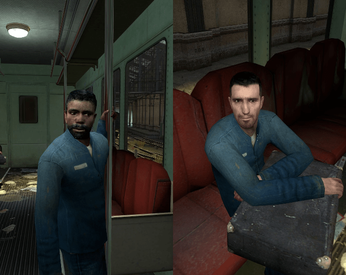 If we look at the two passengers, we see them wearing identical clothing, a blue jumpsuit with what appears to be an identification tag on them. The world that we knew back in the first game seems like a utopia compared to what happens in the present, and as the train halts at its stop, a passenger remarks, “Well, end of the line”.