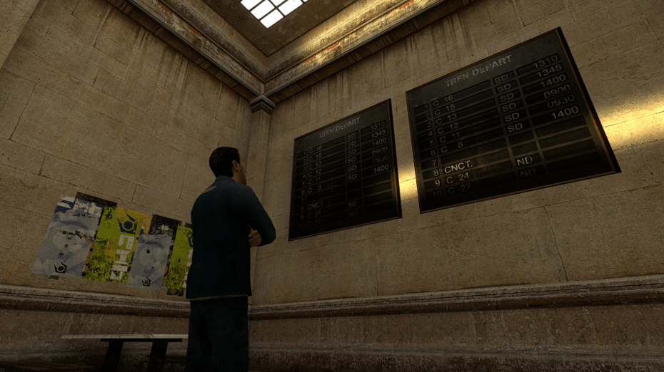 You are brought into a train station, old and grimey. You’re immediately flashed by a robot drone as it scurries away. Walking down you can see an aged man being broadcasted on a large holographic screen, welcoming you with a smile to City 17, calling it the finest remaining urban center while thanking our “benefactors”, whoever they may be. And as the screen cuts out, his smile goes away in an instant.