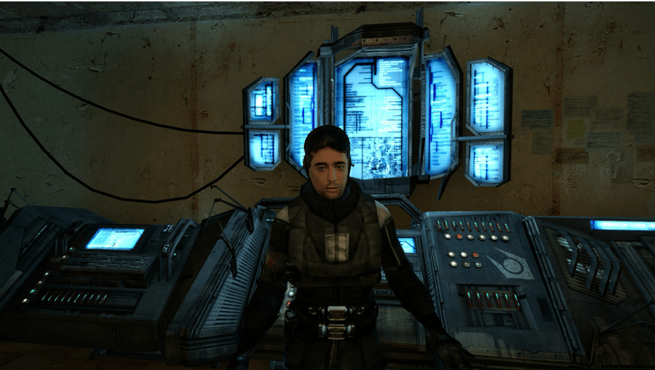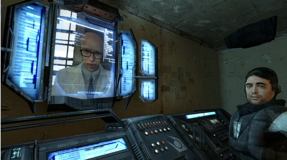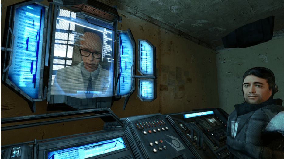 Barney fills you in on what’s been happening, saying how he’s been undercover with Civil Protection. In the meantime, you’re greeted through a screen by a fellow scientist, Dr. Kleiner, who is surprised to see you alive after the events of Black Mesa.