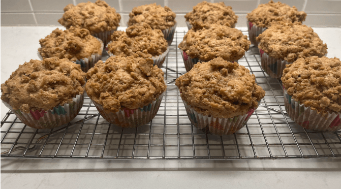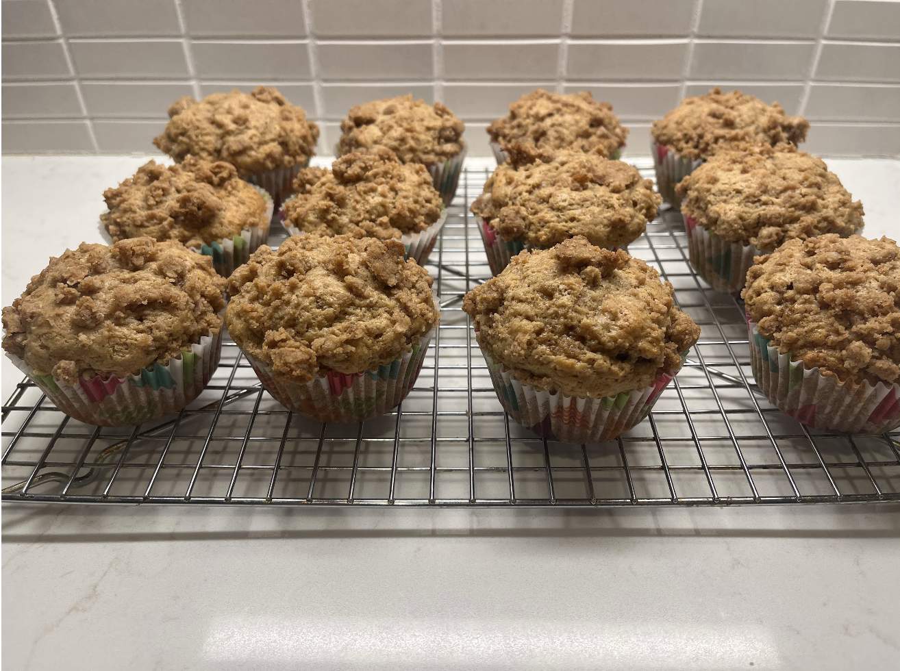 When I tried the muffin warm for the first time, it had a perfect texture, light, and fluffy. The streusel on top added a perfect crunch, that wasn’t too crunchy, it just added the perfect texture. The muffin itself had a nice cinnamon flavor, but I thought that the addition of the streusel was needed for extra cinnamon flavor. Everyone in my family tried them and two days later all the muffins were gone. They are the perfect sweet treat or easy on the go breakfast. Overall, I would definitely recommend this recipe if you’re looking for a quick, easy and delicious muffin recipe.