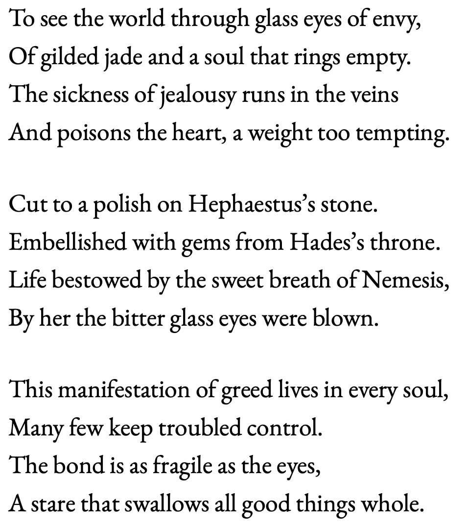 Student Creative Writing The Glass Eyes April 7, 2025 HPSH Plaid Line Leave a comment By: Violet Hirman Share this: Click to share on X (Opens in new window) X Click to share on Facebook (Opens in new window) Facebook Like Loading... Related