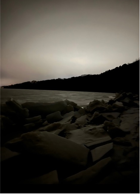 This photo was taken at around 2am and is of Lake Saint Croix. It shows melting ice on the lake as well as pressed together mini ice bergs on the beach created by water expanding as it freezes.