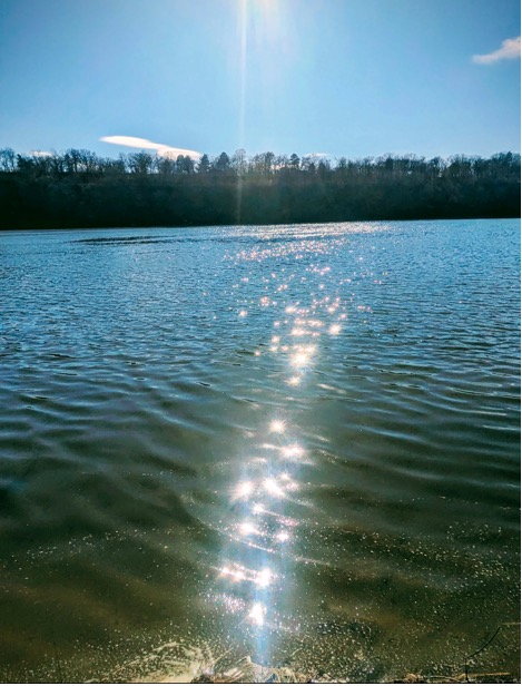 This photo shows the reflection of light off of the Mississippi River in Saint Paul.