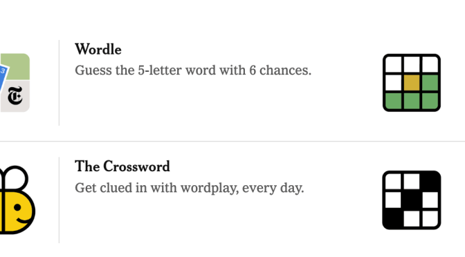 Spelling Bee is a game where you are given 7 letters to arrange into words all using the center letter. This game takes a long time and a lot of critical thinking to complete. I often start this game and continue going back to it throughout the day. I would rate this game a 7/10.